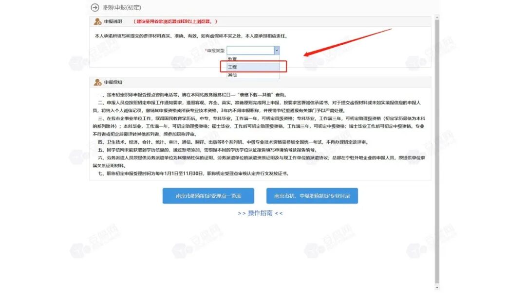 4、进入页面后,选择申报的专业【工程】,点击承诺并申报。