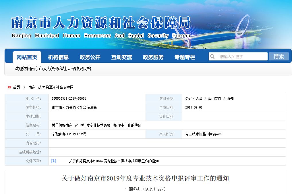 2019年,南京市人社局发布了《关于做好南京市2019年度专业技术资格申报评审工作的通知》,通知提到评中级必须要有初级职称了。