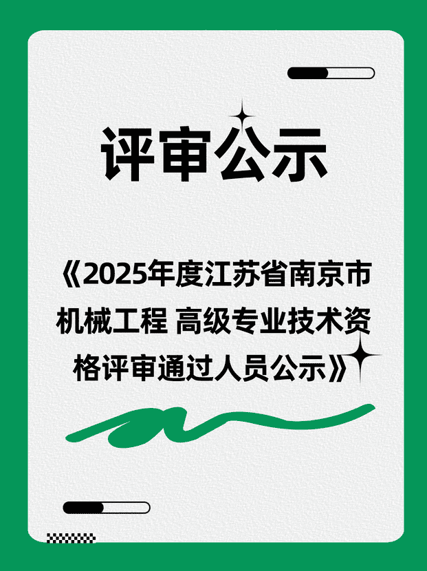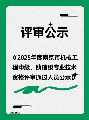 2025年度江苏省南京市机械工程 高级专业技术资格评审通过人员公示